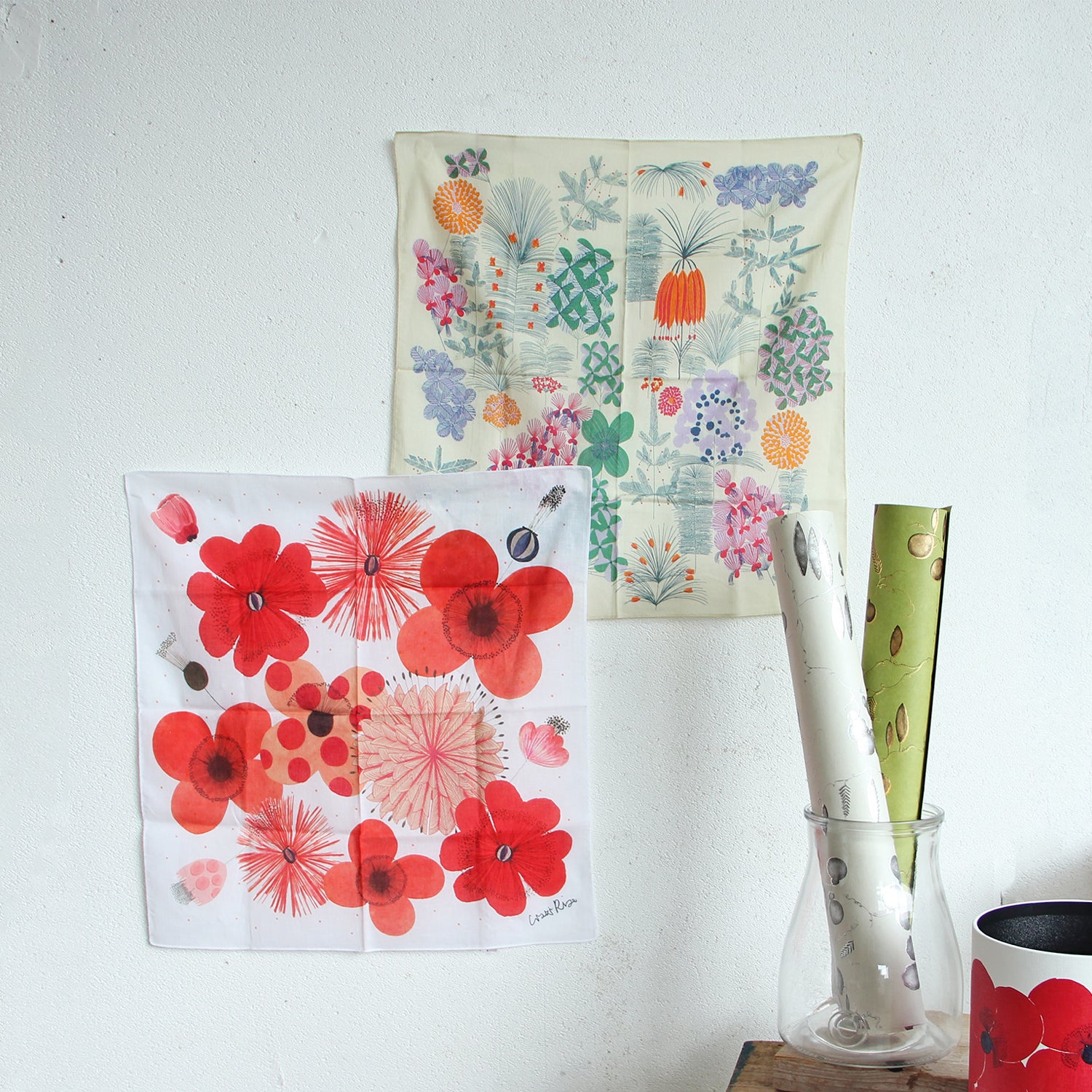 ハンカチとしてはもちろん、スカーフやお弁当包み、インテリアとして飾るなど